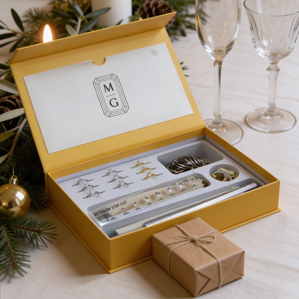 Die Maison-Gabriel Beratungsbox bringt die Ringberatung zu dir nach Hause – präzise, hochwertig und stressfrei. Du erhältst echte Mustermodelle, verschiedene Fassungsstile, Steinformen und Größen, damit du den perfekten Verlobungsring real vergleichen kannst. Ohne Druck. Ohne Guesswork.
