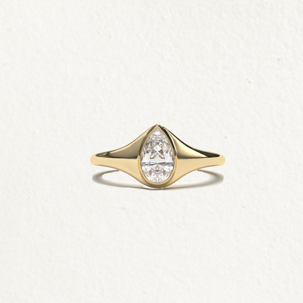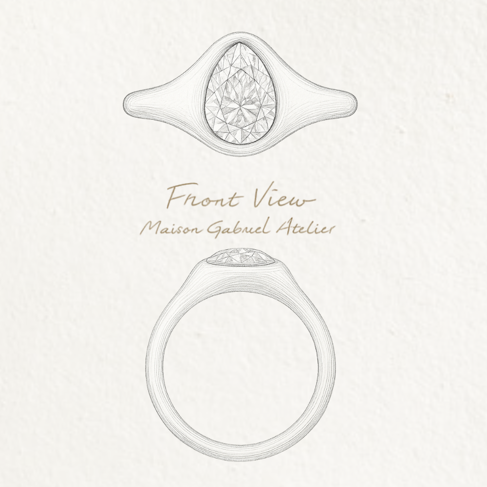 Gemeinsam gestalten wir deinen Ring, so wie diesen maßgefertigt aus 18 Karat Gold, besetzt mit einem 2,2 ct Pear-Cut.