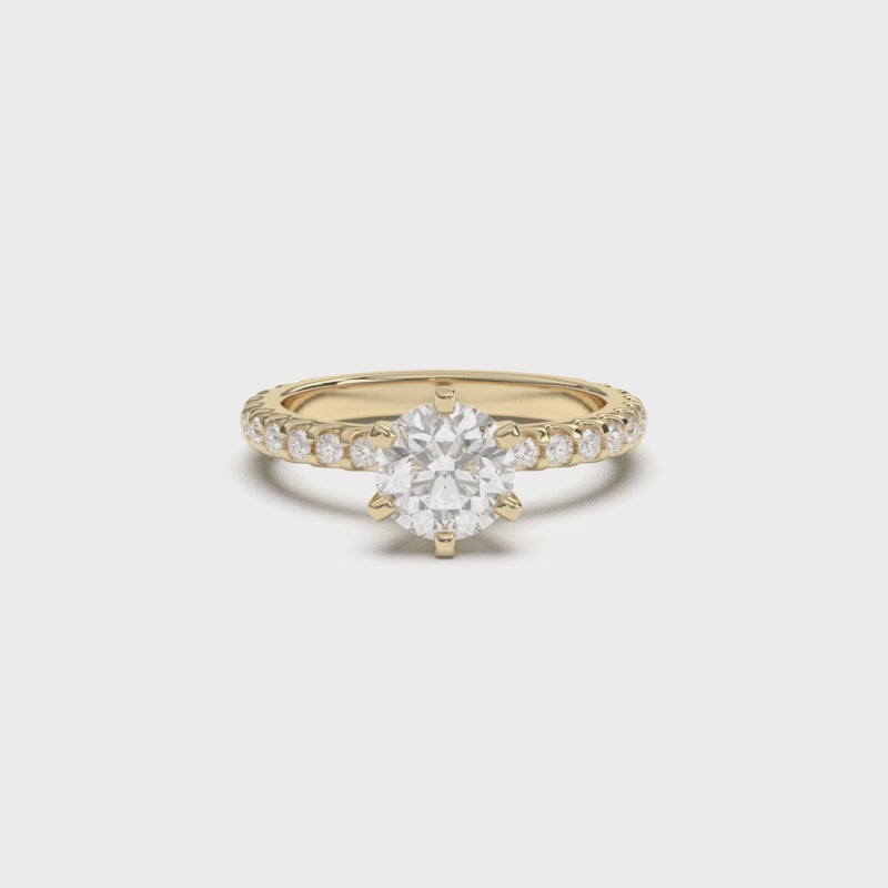 Ein Ring, der klassische Solitär-Ästhetik mit einem Hauch Glamour verbindet, ideal für alle, die sich einen zeitlosen Verlobungsring mit subtiler Brillanz wünschen.Karat-Gesamtgewicht: ca. 0,50 ct Pavé-Steine zusätzlich zum Hauptstein*