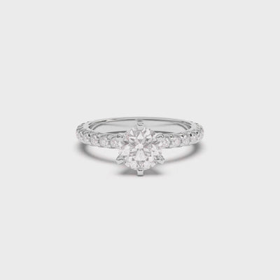 Der Claire Pavé Verlobungsring vereint filigrane Eleganz mit funkelnder Raffinesse.