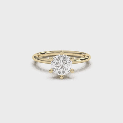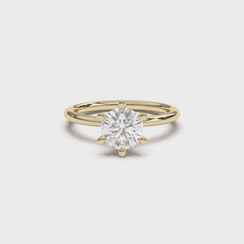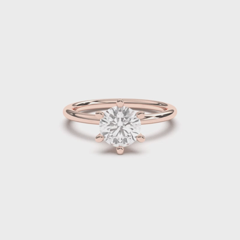 Im Zentrum steht ein brillant geschliffener Labordiamant, gehalten von sechs filigranen Krappen, die den Stein sicher umschließen und sein Funkeln wirkungsvoll betonen.