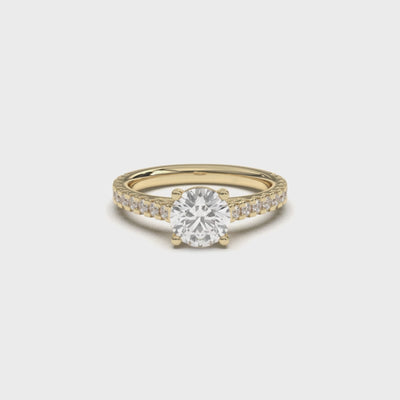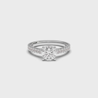 Der Soline Pavé Verlobungsring verbindet das ikonische Kathedral-Design mit fein gesetzten Pavé-Diamanten, die die Ringschiene in zartem Glanz erstrahlen lassen. Die erhöhten Schultern des Rings verleihen dem Mittelstein eine eindrucksvolle Präsenz und lenken den Blick auf das Herzstück: einen brillant geschliffenen Labordiamanten, der für klare Werte und kompromisslose Schönheit steht.