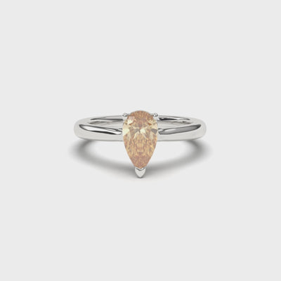 Der 1,5 ct Pink Pear Labordiamant ist in 950 Platin gefasst, getragen von einer feinen, offenen Soline-Fassung.