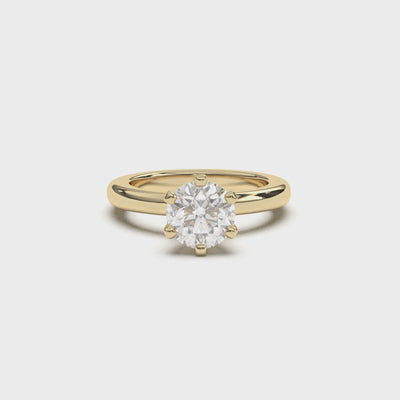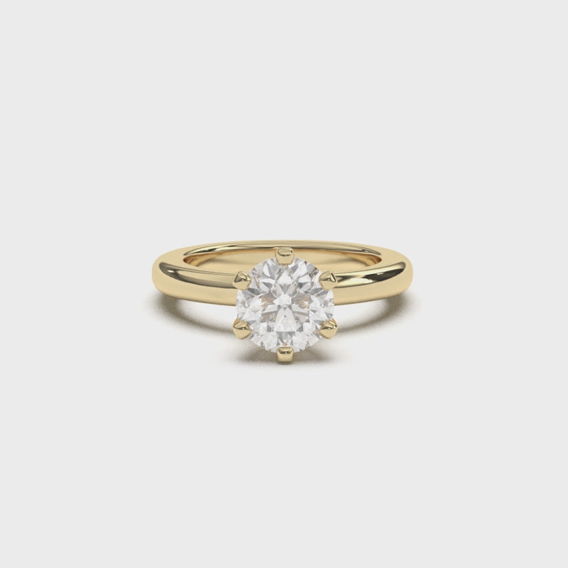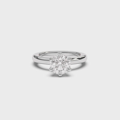 Im Mittelpunkt: ein brillant geschliffener Labordiamant, gehalten von sech filigranen Krappen. Diese fassen den Stein sicher und bringen seine Leuchtkraft voll zur Geltung.